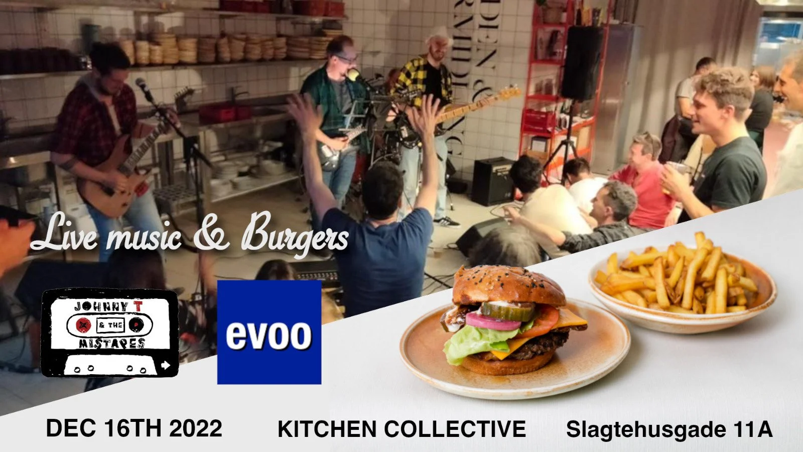 The Mistapes are a rock band formed by Marco Pozzi and his "Mistapes" and they will play live in kitchen collective on Friday 16/12! The menu will be curated by Marco Maccarini, head chef and owner at evoo. The burgers are completely homemade, fresh ground beef, homemade spicy salsiccia and lots of great sides!All you have to do in order to attend the concert is to buy a drink in advance - the concert is on the house. No walk-ins can be accepted - only pre-orders through Evoos webshop 🙌